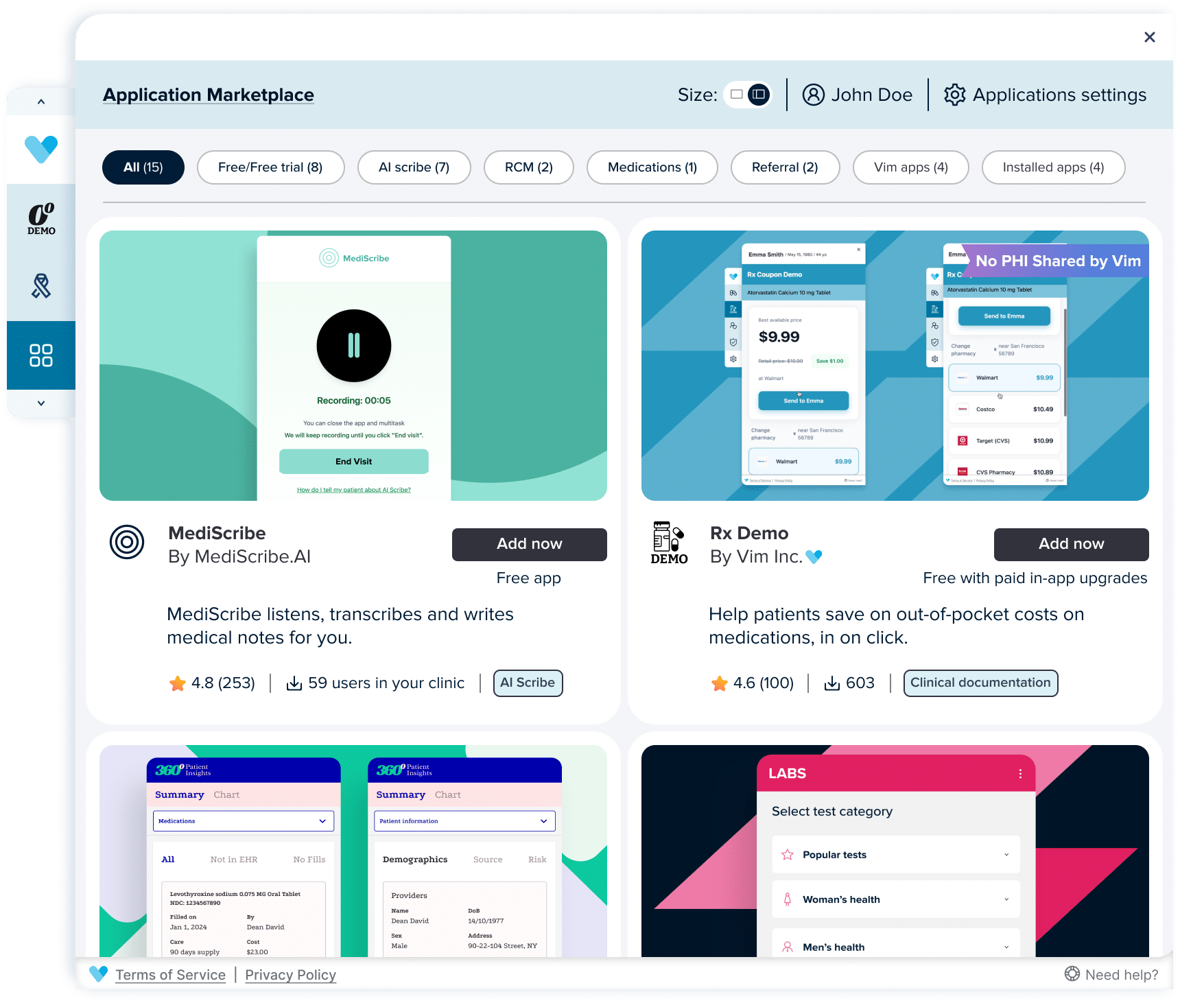 Vim connects healthcare’s key players such as providers, payers, EHRs, and developers, through a powerful, in-workflow platform. We deliver the right data, tools, actions and AI-driven apps at the point of care to streamline operations, improve outcomes, and unlock innovation.