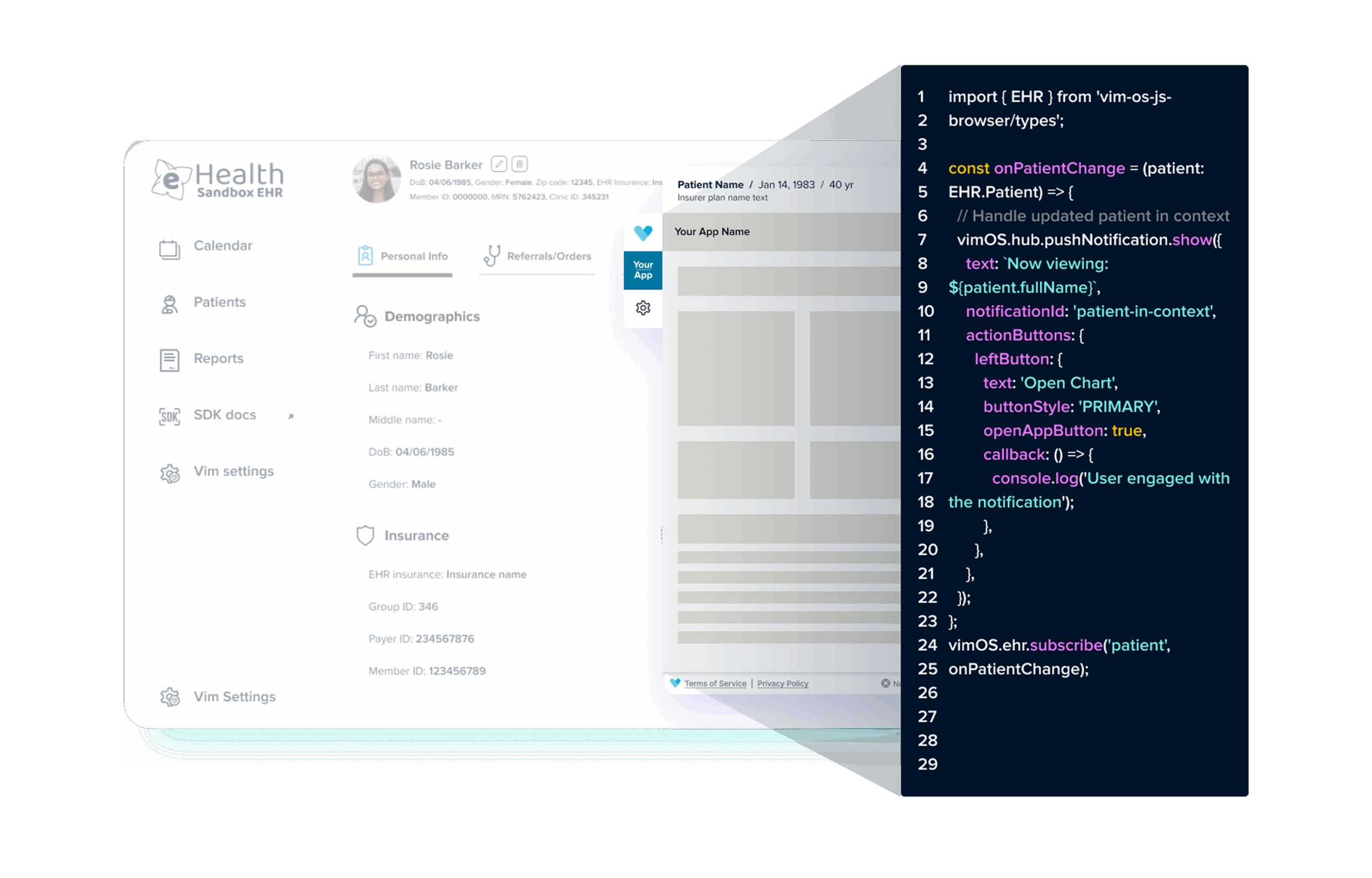 Vim Connect embeds your app directly into EHR workflows: no delays, no rebuilds, no friction. Build once, deploy everywhere, at any time.