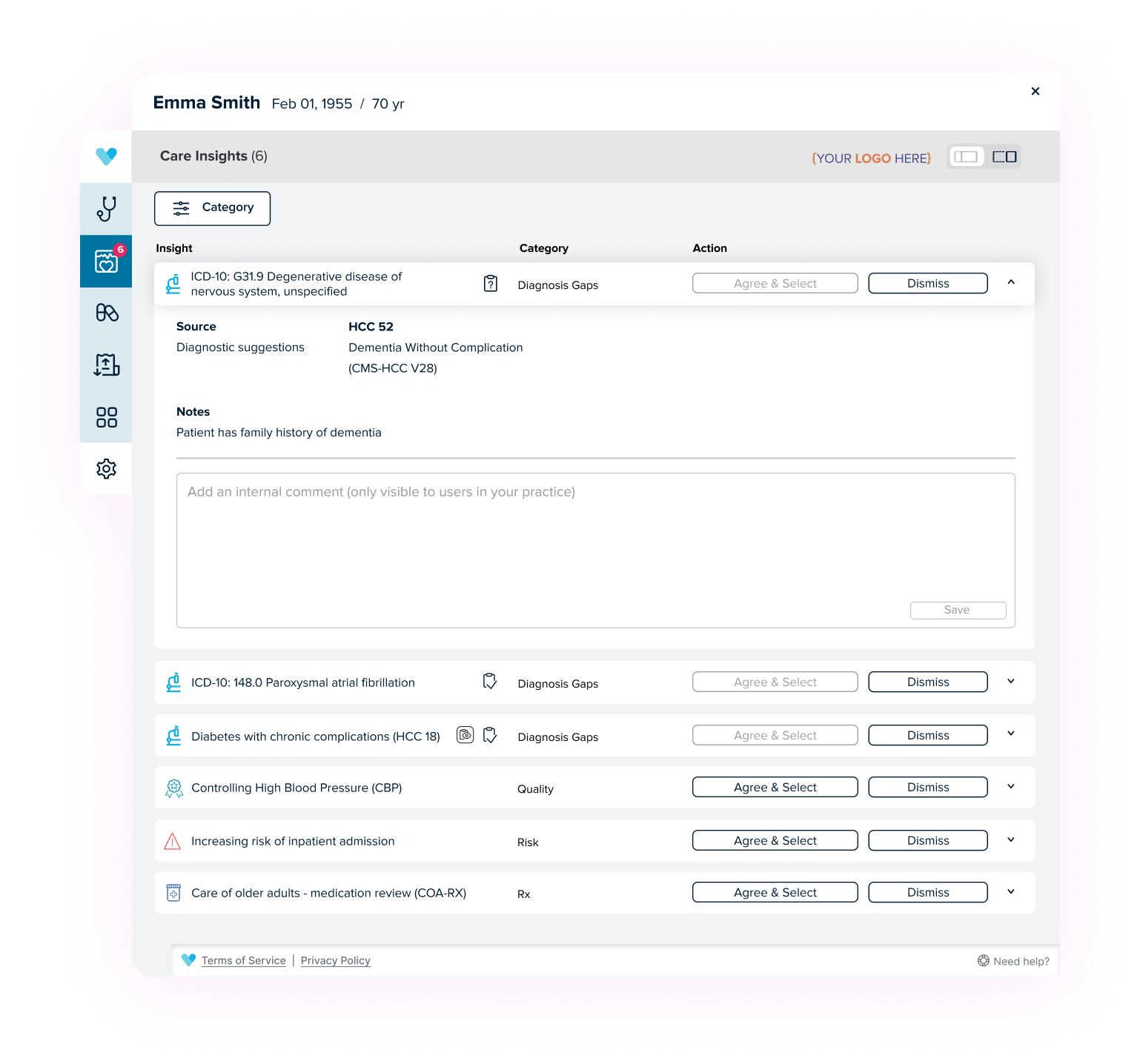 Enhance documentation accuracy and reduce provider friction by delivering context-aware tools that surface relevant information and enable seamless write-back into the EHR, all within the natural flow of the clinical encounter.